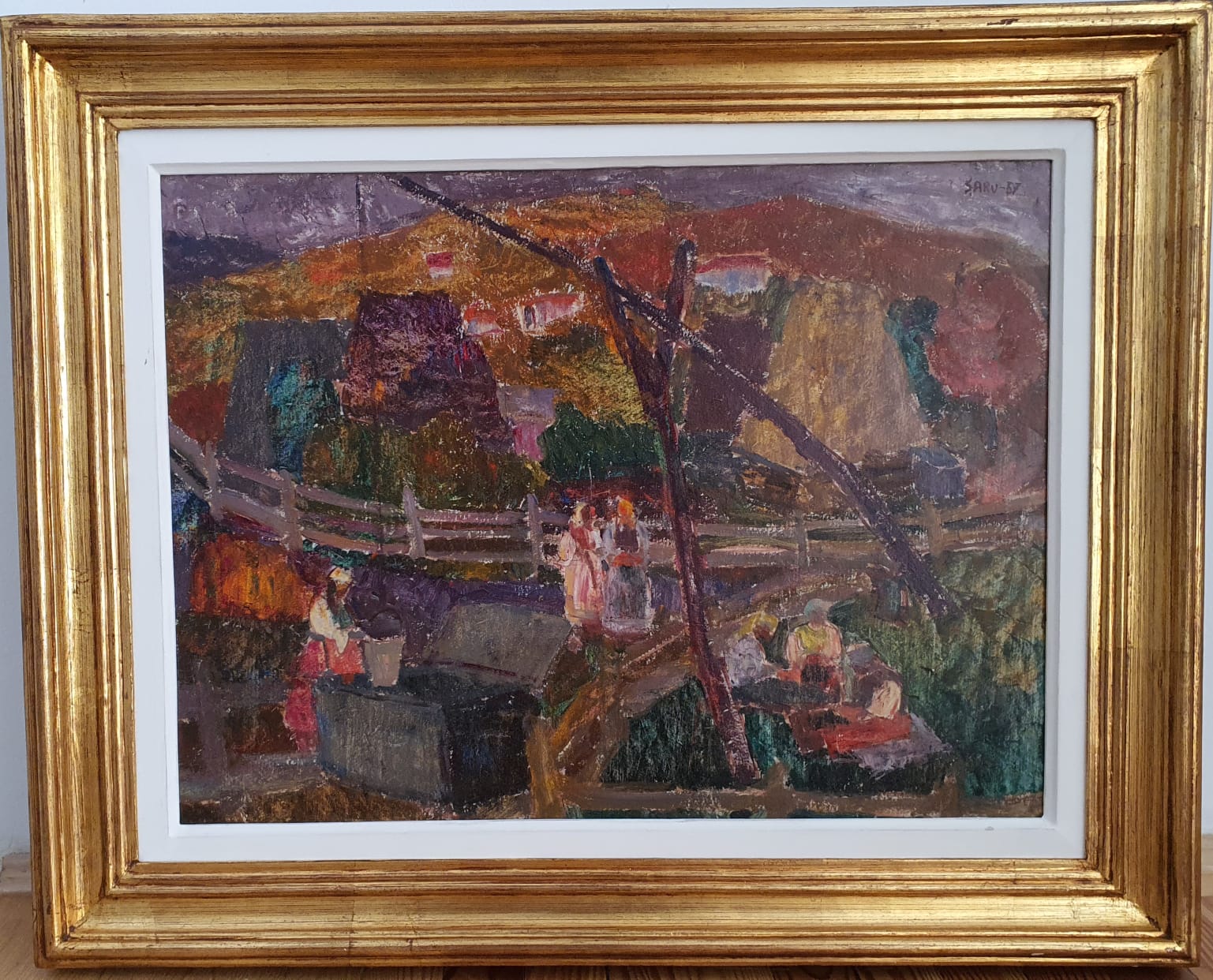 Georghe Saru(1920-2003,American U.S.A-Roumanian)-Rural Scene, ,(one side),Landscape
